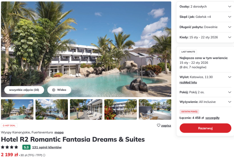 Wylot z Katowic na Fuerteventurę to świetny sposób, by zacząć przygodę na jednej z najbardziej słonecznych wysp archipelagu kanaryjskiego. Na miejscu czeka hotel R2 Romantic Fantasia Dreams & Suites – czterogwiazdkowy obiekt, który łączy wygodę z klimatem sprzyjającym relaksowi.