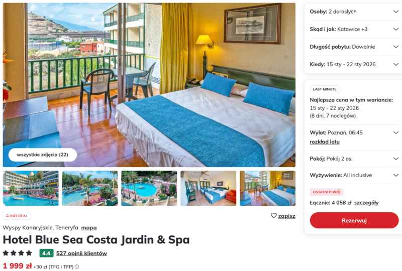 Wycieczka na Teneryfę z wylotami z Poznania i Katowic to świetna opcja dla tych, którzy zimą marzą o odrobinie słońca. Lot na jedną z najbardziej malowniczych Wysp Kanaryjskich i pobyt w hotelu Blue Sea Costa Jardin & Spa zapowiadają beztroski czas pełen relaksu i przyjemności.