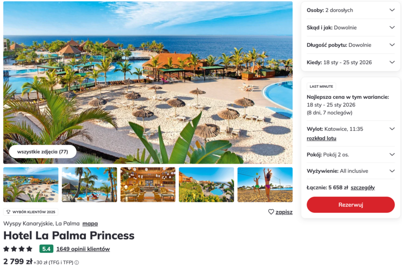 Wylot z Katowic kieruje się ku jednej z najbardziej zielonych i spokojnych wysp na Kanarach. To tam, w otoczeniu oceanu, klifów i egzotycznej przyrody, czeka czterogwiazdkowy hotel La Palma Princess.