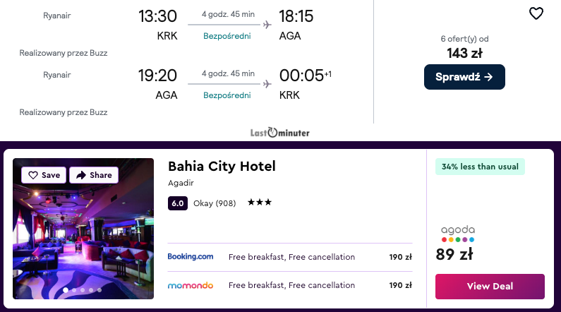 Misją Lastminuter.pl jest przedstawienie Ci najlepszych zdaniem naszej redakcji okazji na podróże. Opisujemy oferty znalezione przez nas w internecie i wskazujemy adresy internetowe, pod którymi samodzielnie możesz wykupić podróż lub elementy podróży. Ceny w artykułach są aktualne w chwili publikacji. Możemy otrzymywać wynagrodzenie od partnerów handlowych, do których Cię przekierowujemy. Nie ma to wpływu na cenę Twojej wycieczki. Powielanie publikacji zabronione.