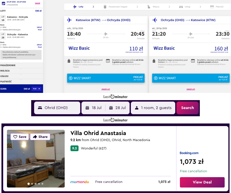 Coraz więcej osób zwraca uwagę na tę trasę – atrakcyjne ceny biletów i wyjątkowy region, który łączy przyrodę z kulturą, to kusząca kombinacja. W Ochrydzie można nie tylko odpocząć nad wodą, ale też odkrywać zabytki, klimatyczne uliczki i ślady bogatej historii.Latem Macedonia Północna zazwyczaj rozpieszcza pogodą – temperatury utrzymują się w granicach 25–30°C, więc jest ciepło, ale nie za gorąco. Taka aura sprzyja zarówno leniwemu wypoczynkowi, jak i aktywnemu zwiedzaniu.