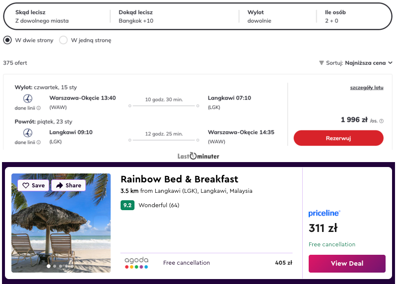 Misją Lastminuter.pl jest przedstawienie Ci najlepszych zdaniem naszej redakcji okazji na podróże. Opisujemy oferty znalezione przez nas w internecie i wskazujemy adresy internetowe, pod którymi samodzielnie możesz wykupić podróż lub elementy podróży. Ceny w artykułach są aktualne w chwili publikacji. Możemy otrzymywać wynagrodzenie od partnerów handlowych, do których Cię przekierowujemy. Nie ma to wpływu na cenę Twojej wycieczki. Powielanie publikacji zabronione.