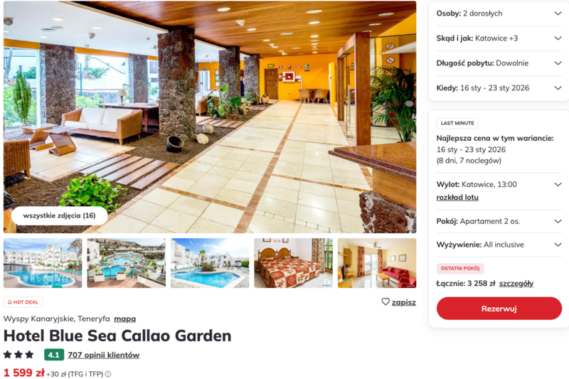 Wylot z Katowic na słoneczną Teneryfę to świetny sposób, by na chwilę uciec od codzienności i zanurzyć się w przyjemnym, tropikalnym klimacie. Ta hiszpańska wyspa na Oceanie Atlantyckim kusi nie tylko pięknymi widokami, ale też pogodą, której niejeden zimą pozazdrości. Propozycja wyjazdu do hotelu Blue Sea Callao Garden, położonego w południowo-zachodniej części wyspy, łączy wygodę z dostępem do lokalnych atrakcji, tworząc dobrą bazę wypadową dla podróżnych.