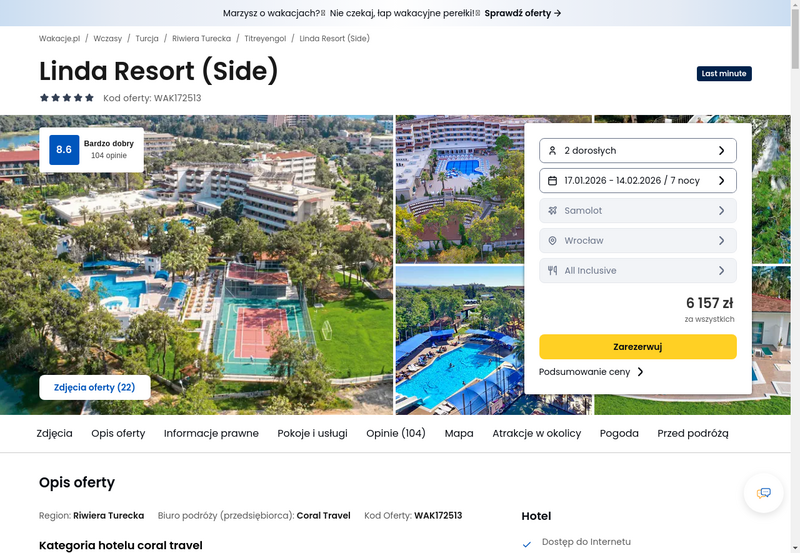Misją Lastminuter.pl jest przedstawienie Ci najlepszych zdaniem naszej redakcji okazji na podróże. Opisujemy oferty znalezione przez nas w internecie i wskazujemy adresy internetowe, pod którymi samodzielnie możesz wykupić podróż lub elementy podróży. Ceny w artykułach są aktualne w chwili publikacji. Możemy otrzymywać wynagrodzenie od partnerów handlowych, do których Cię przekierowujemy. Nie ma to wpływu na cenę Twojej wycieczki. Powielanie publikacji zabronione.