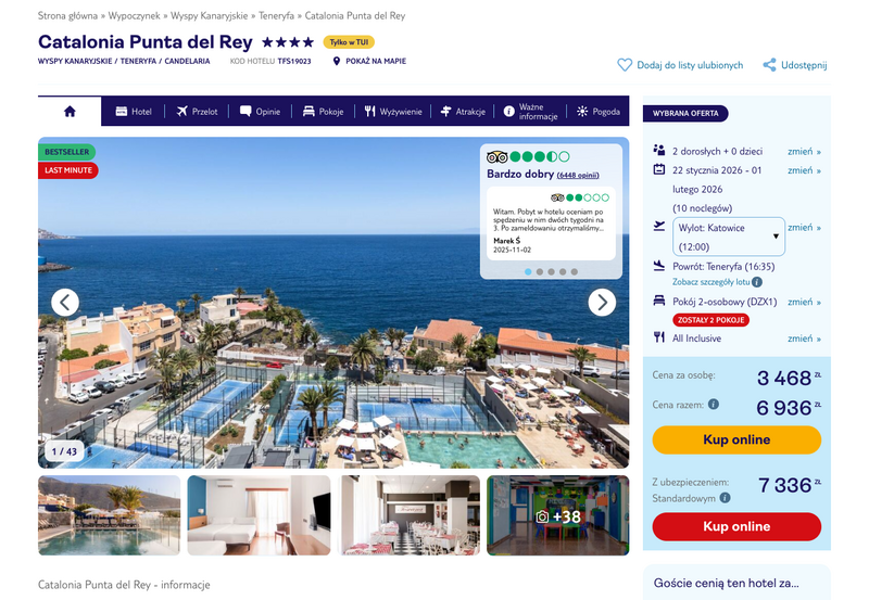 Aktualizacja: Urlop na Teneryfie: 10 dni w 4* hotelu z all inclusive za 2362 zł