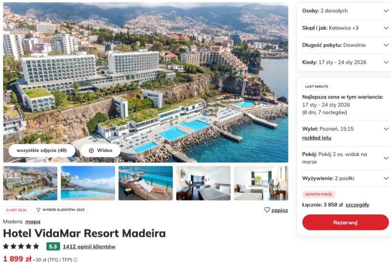 Wyloty z Poznania i Warszawy na Maderę to świetna okazja, żeby na chwilę oderwać się od codzienności i zanurzyć w pięknym, portugalskim krajobrazie. Wybierając pobyt w 5-gwiazdkowym Hotelu VidaMar Resort Madeira, można liczyć na relaks w komfortowych warunkach z widokiem na bezkresny Ocean Atlantycki.
