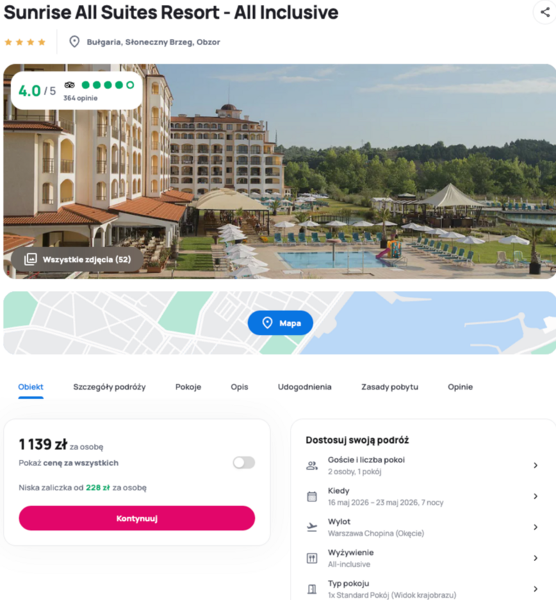 Tygodniowy wyjazd z pakietem all inclusive, komfortowym zakwaterowaniem i bliskością plaży to propozycja, która zdecydowanie zachęca do spakowania walizki. Jeśli marzy Ci się spokojny urlop nad Morzem Czarnym, Sunrise All Suites Resort może być strzałem w dziesiątkę.