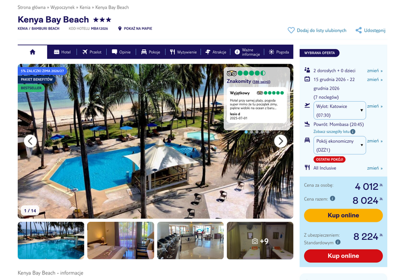 Aktualizacja: Rezerwuj z wyprzedzeniem: Kenia, 3* hotel z all inclusive przy plaży od 3732 zł