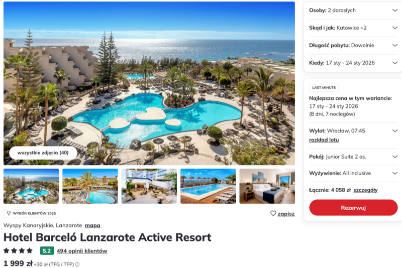 Na Lanzarote nie brakuje też miejsc, które warto zobaczyć – od jaskiń Jameos del Agua, po winnice w regionie La Geria, gdzie można poczuć unikalny, kanaryjski rytm codzienności. To kierunek, który z powodzeniem łączy wygodę, wyjątkowe doświadczenia i korzystną cenę, niezależnie od tego czy podróżujesz z rodziną, czy partnerem.