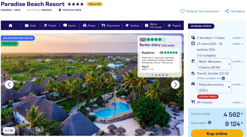 Wyloty na Zanzibar odbywają się z Warszawy, Poznania i Katowic, a celem podróży jest Paradise Beach Resort w spokojnej miejscowości Uroa. Całość zaplanowano w formule all inclusive, więc wszystko, czego potrzeba do pełnego relaksu, jest już w cenie.