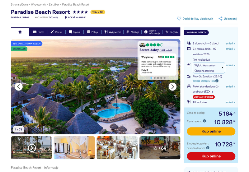 Aktualizacja: Wiosna na Zanzibarze: 10 dni w 4* hotelu z all inclusive przy plaży od 4562 zł