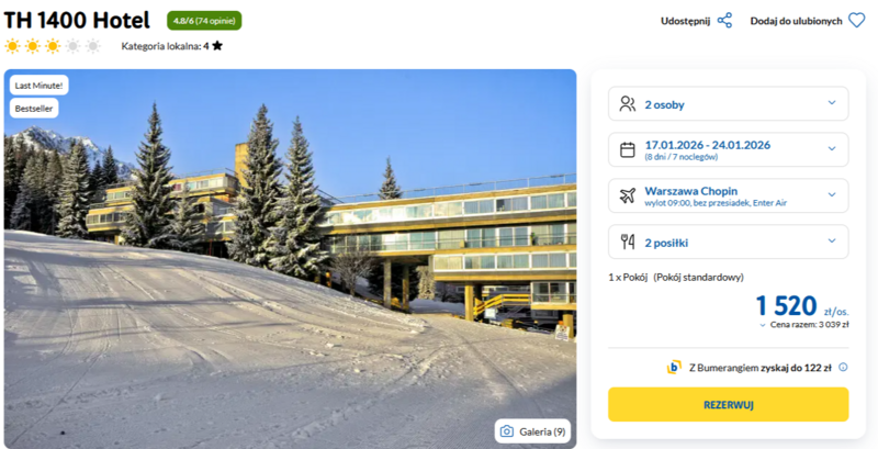 Wyjazd do TH 1400 Hotel to propozycja, która łączy wygodę, świetną lokalizację i górski klimat – doskonała opcja na aktywny i relaksujący wypoczynek w samym sercu Alp.