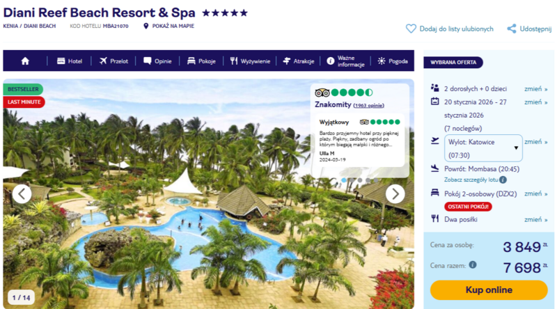 Wyloty z Katowic i Warszawy do Mombasy to początek egzotycznej przygody w Kenii. Proponowana wycieczka do Diani Reef Beach Resort & Spa to świetna okazja, by na chwilę oderwać się od codzienności i zanurzyć w tropikalnej scenerii.