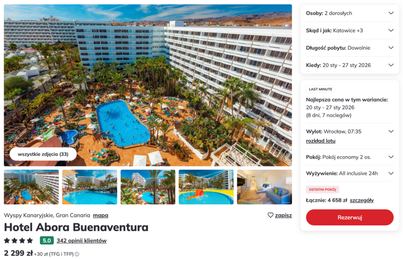 Wyloty z Wrocławia i Poznania na Kanary i zakwaterowanie w czterogwiazdkowym Abora Buenaventura.