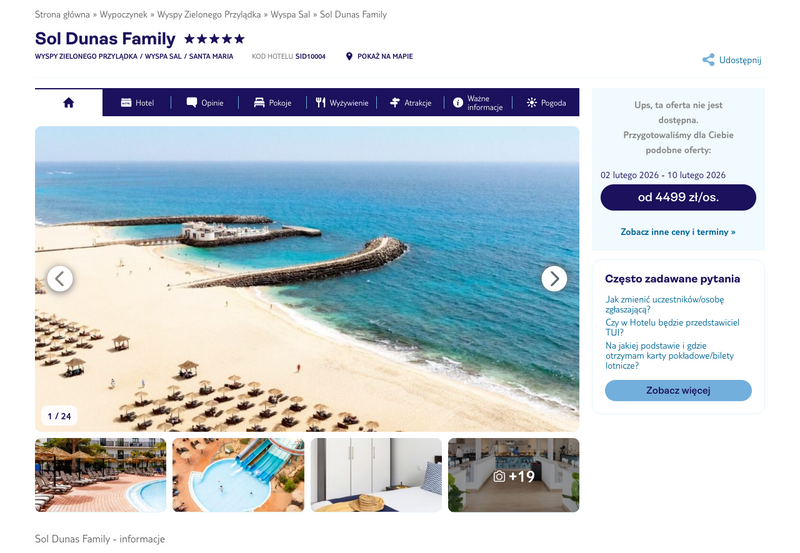 Niedostępność oferty została udokumentowana zrzutem ekranu.
