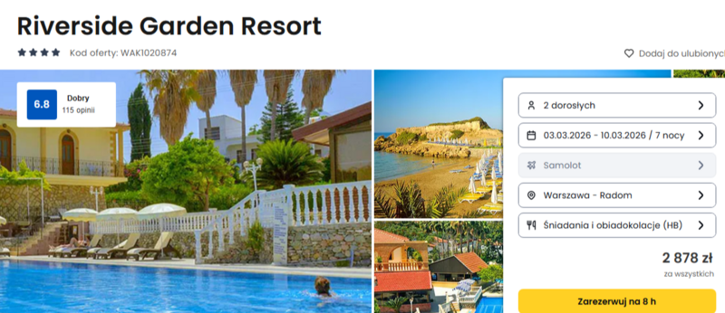 Wylot na Cypr z Gdańska, Katowic, Krakowa, Warszawy, Radomia lub Berlina. Tygodniowy pobyt w Riverside Garden Resort w Alsancak na Cyprze Północnym.