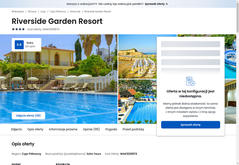 Niedostępność oferty została udokumentowana zrzutem ekranu.