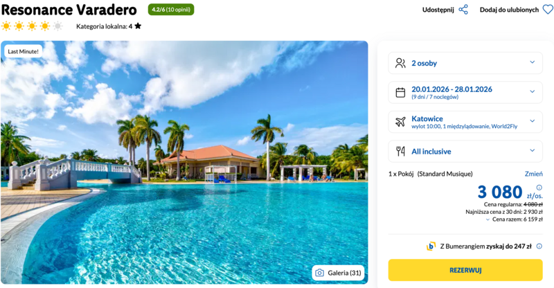 Kuba last minute: 4* hotel z all inclusive za 3080 zł