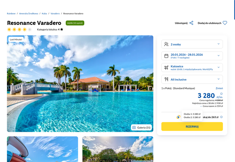 Aktualizacja: Kuba last minute: 4* hotel z all inclusive za 3080 zł