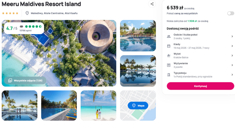 Całość wypada atrakcyjnie dzięki wysokiemu standardowi, rozbudowanej ofercie gastronomicznej i rekreacyjnej oraz pozytywnym opiniom. Warto uwzględnić dodatkowe opłaty lokalne i koszt transferu, które zwiększają budżet wyjazdu. To dobra propozycja dla osób szukających komfortowego, rodzinnego wypoczynku na tropikalnej wyspie.