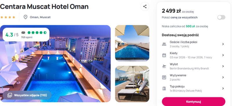 Oman, kraj o bogatej historii i pięknych krajobrazach, zyskuje na popularności wśród polskich podróżników szukających odrobiny egzotyki. Czterogwiazdkowy Centara Muscat oferuje przestronne pokoje, sporo udogodnień i przyjazną obsługę. Goście chwalą dobry stosunek jakości do ceny, a ocena na TripAdvisorze potwierdza zadowolenie z lokalizacji i czystości.