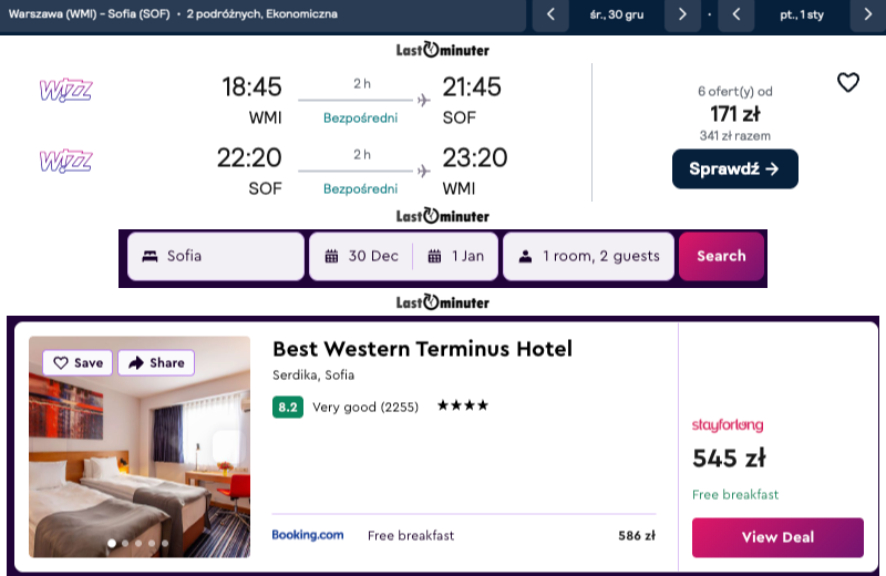Ceny są przyjazne dla portfela, a loty Wizz Air odbywają się bez przesiadek, co upraszcza planowanie. Dogodne godziny wylotów pozwalają dobrze wykorzystać czas spędzony w stolicy.Krótki lot i korzystna cena sprawiają, że Sofia jest na wyciągnięcie ręki — bez przesiadek, bez komplikacji i w sam raz na wygodny, dobrze zorganizowany wypad.