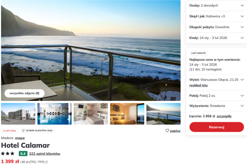 Oferta pobytu w Hotelu Calamar w tym terminie wypada bardzo atrakcyjnie, zwłaszcza jeśli chcesz połączyć odpoczynek z aktywnym zwiedzaniem. Bliskość natury i lokalnych atrakcji daje poczucie spokoju, a jednocześnie otwiera wiele możliwości poznawania uroków Madery. Dla osób ceniących piękne widoki i kameralną atmosferę to dobry wybór na nadchodzące wczasy.