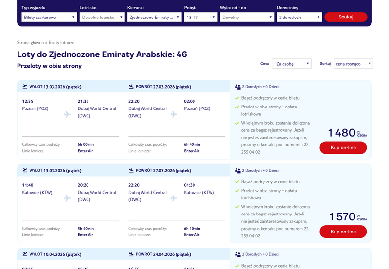 Aktualizacja: Tanie loty czarterowe do Dubaju za 609 zł