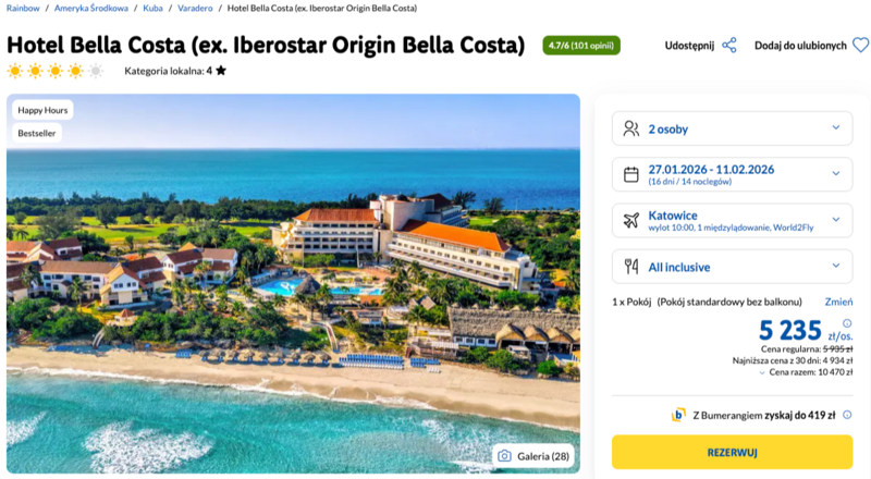 To propozycja w przystępnej cenie dla osób, które chcą złapać oddech i zregenerować siły w ładnym otoczeniu. Różnorodne atrakcje, komfort i pozytywne opinie o Bella Costa pokazują, że to sprawdzony wybór na kubański wypoczynek.