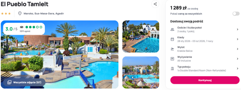 Biorąc pod uwagę lokalizację i zakres all inclusive, El Pueblo Tamlelt to atrakcyjna propozycja na zimowy wyjazd. Dobra opcja, jeśli marzy się kilka słonecznych dni nad oceanem w Agadirze.