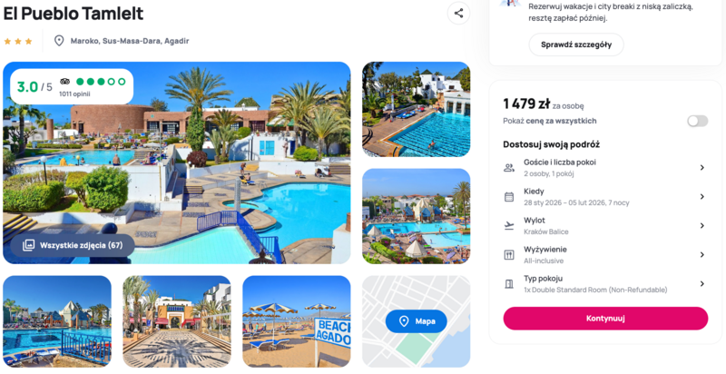 Biorąc pod uwagę lokalizację i zakres all inclusive, El Pueblo Tamlelt to atrakcyjna propozycja na zimowy wyjazd. Dobra opcja, jeśli marzy się kilka słonecznych dni nad oceanem w Agadirze.