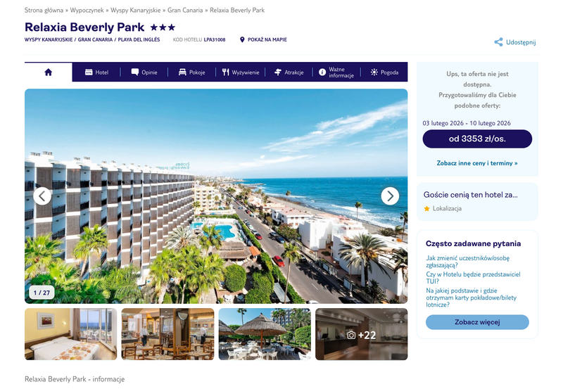 Niedostępność oferty została udokumentowana zrzutem ekranu.