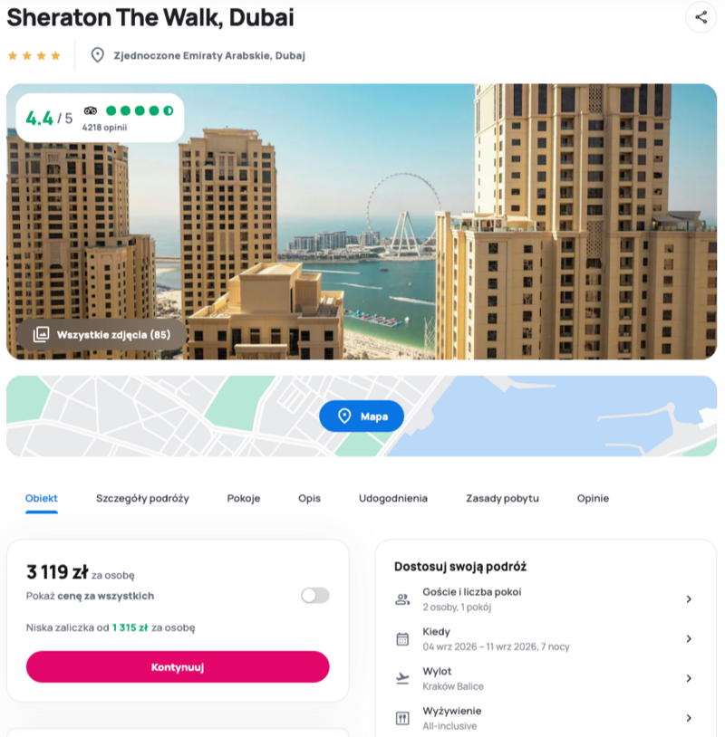 Wyloty z Krakowa to prosty sposób, by szybko poczuć klimat Zjednoczonych Emiratów Arabskich. Pobyt w hotelu Sheraton The Walk z opcją all inclusive łączy wygodę, dobrą lokalizację i brak zmartwień o codzienne detale.