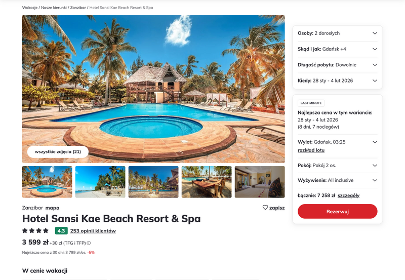 Aktualizacja: Zanzibar last minute: 4* hotel z all inclusive przy plaży od 3599 zł!