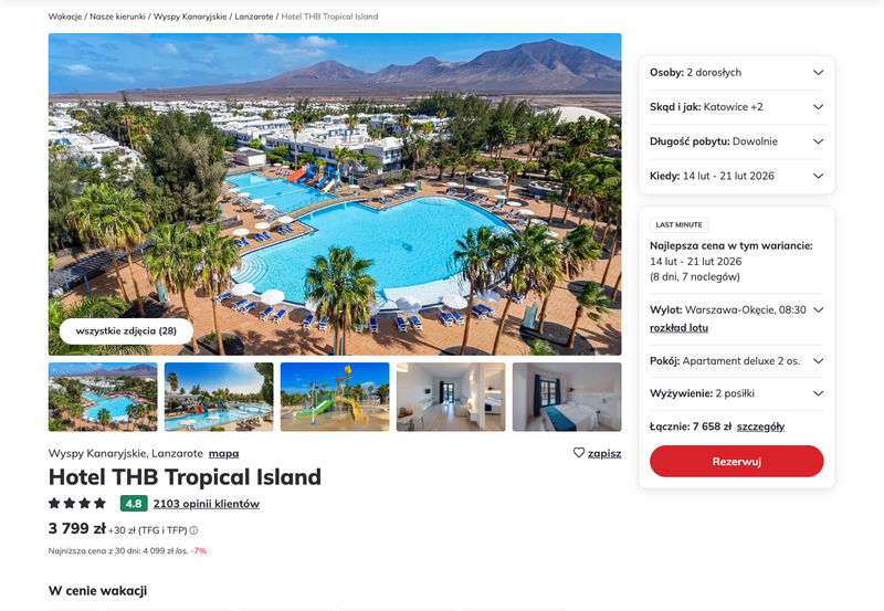 Aktualizacja: Lanzarote last minute: 4* hotel z wyżywieniem za 1999 zł