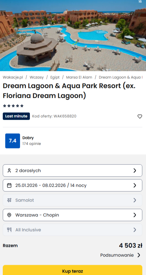 Misją Lastminuter.pl jest przedstawienie Ci najlepszych zdaniem naszej redakcji okazji na podróże. Opisujemy oferty znalezione przez nas w internecie i wskazujemy adresy internetowe, pod którymi samodzielnie możesz wykupić podróż lub elementy podróży. Ceny w artykułach są aktualne w chwili publikacji. Możemy otrzymywać wynagrodzenie od partnerów handlowych, do których Cię przekierowujemy. Nie ma to wpływu na cenę Twojej wycieczki. Powielanie publikacji zabronione.