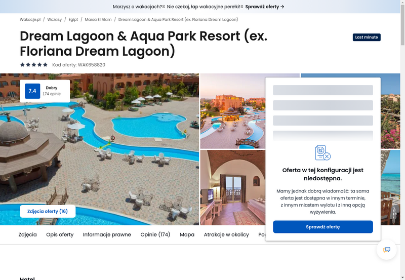 Niedostępność oferty została udokumentowana zrzutem ekranu.