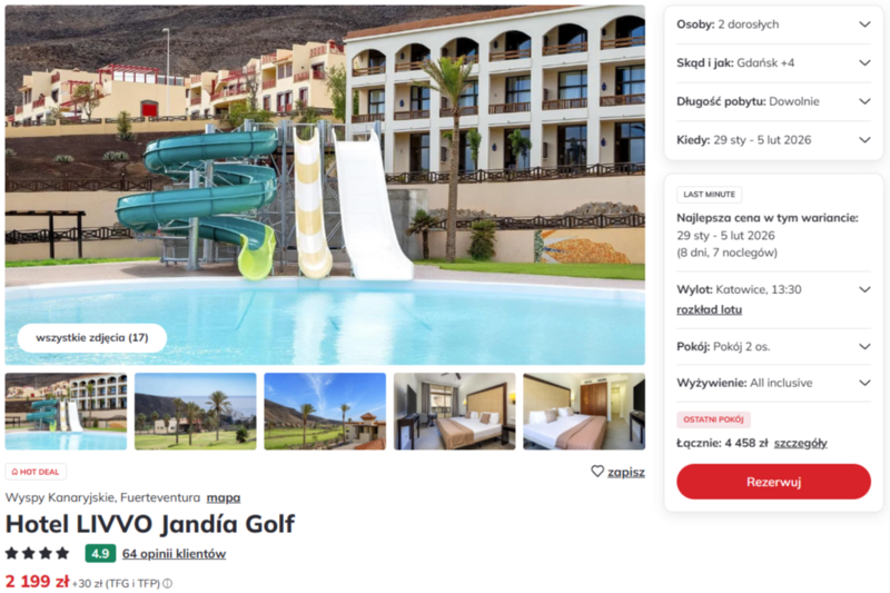Ferie pod palmami: Fuerteventura, 4* hotel z all inclusive za 2199 zł