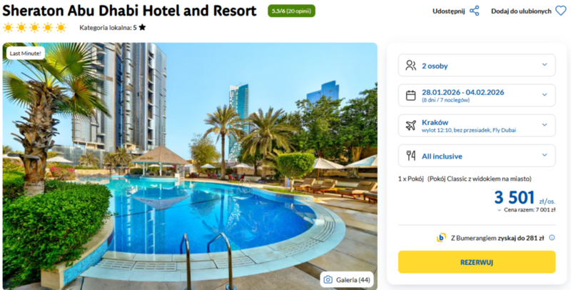 Emiraty last minute: 5* Sheraton Abu Dhabi Hotel and Resort z all inclusive od 3501 zł