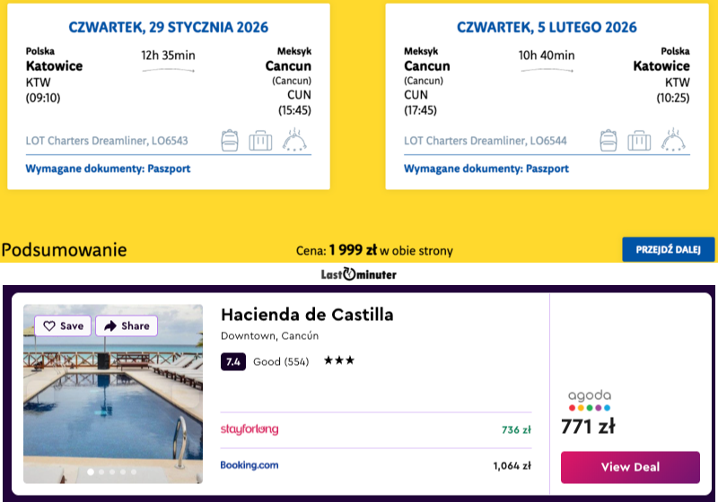 Misją Lastminuter.pl jest przedstawienie Ci najlepszych zdaniem naszej redakcji okazji na podróże. Opisujemy oferty znalezione przez nas w internecie i wskazujemy adresy internetowe, pod którymi samodzielnie możesz wykupić podróż lub elementy podróży. Ceny w artykułach są aktualne w chwili publikacji. Możemy otrzymywać wynagrodzenie od partnerów handlowych, do których Cię przekierowujemy. Nie ma to wpływu na cenę Twojej wycieczki. Powielanie publikacji zabronione.