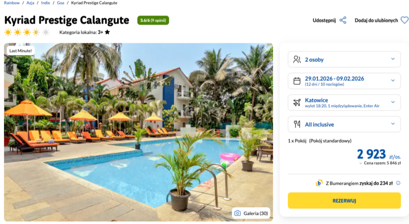 Indie (Goa): 10 dni w 3* hotelu z all inclusive od 2923 zł