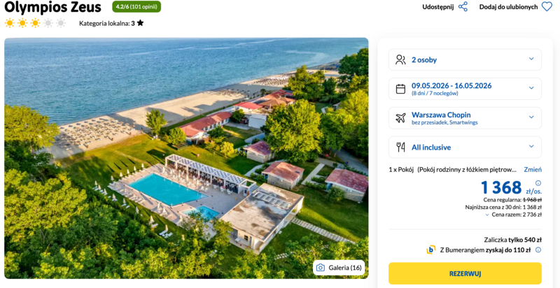 Wylot z Warszawy, a na miejscu – hotel Olympios Zeus położony na malowniczej Riwierze Olimpijskiej.