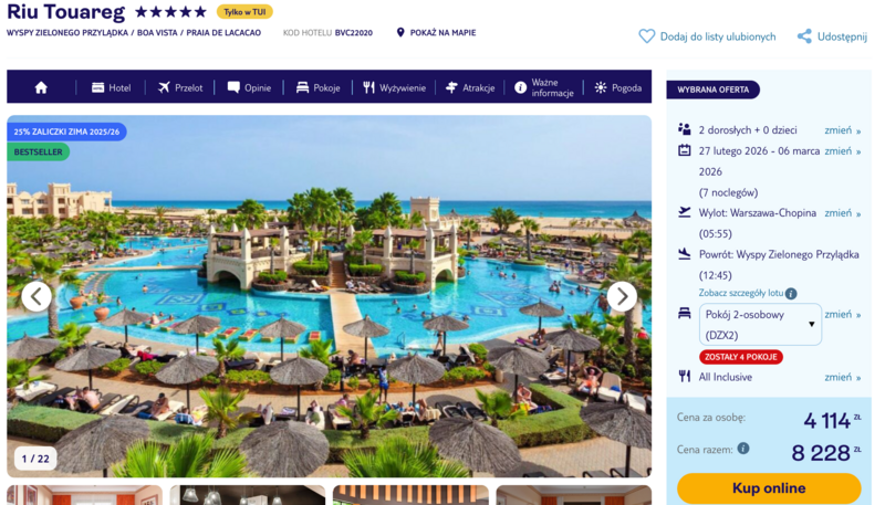 Raj na Atlantyku: Wyspy Zielonego Przylądka, 5* Riu Touareg z all inclusive za 4114 zł