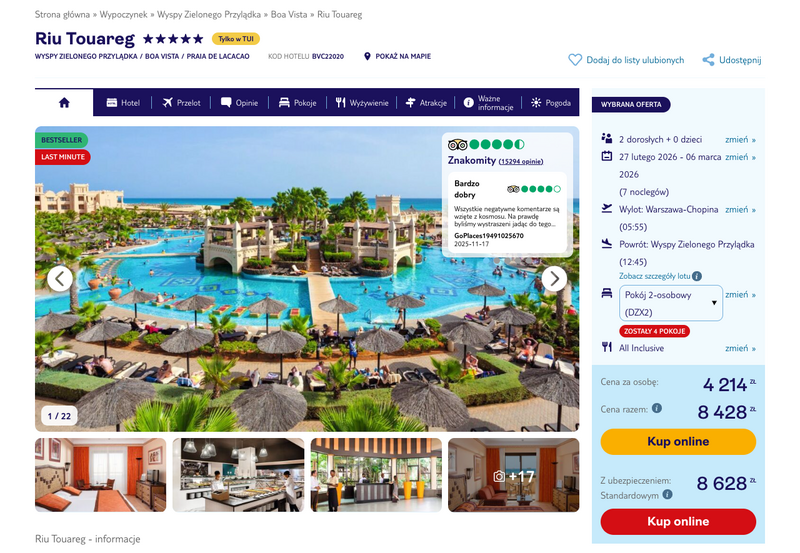 Aktualizacja: Raj na Atlantyku: Wyspy Zielonego Przylądka, 5* Riu Touareg z all inclusive za 4114 zł