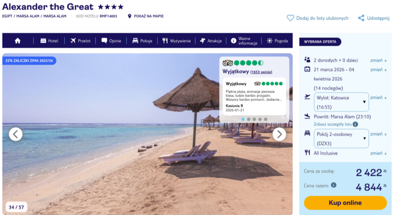 Biorąc pod uwagę całość, wyjazd do Egiptu z pobytem w hotelu Alexander the Great prezentuje się korzystnie. Wysoki standard obsługi, komfortowe warunki i szeroka lista atrakcji sprawiają, że to propozycja, która dobrze sprawdzi się na urlop.
