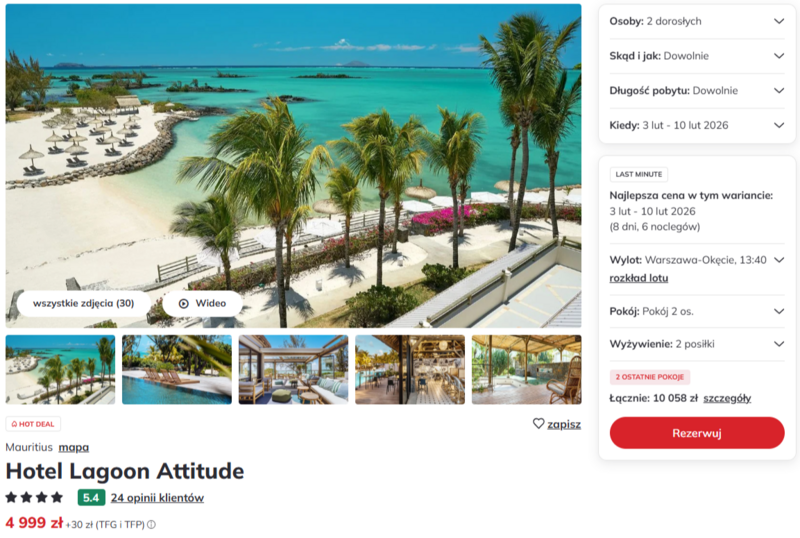 Biorąc pod uwagę cenę i dostęp do atrakcji, wyjazd do hotelu Lagoon Attitude wypada bardzo korzystnie. To połączenie komfortowego wypoczynku z możliwością odkrywania jednych z najpiękniejszych zakątków wyspy. Dla osób szukających odrobiny luksusu w zestawieniu z aktywnym relaksem to kierunek, który łatwo polubić.