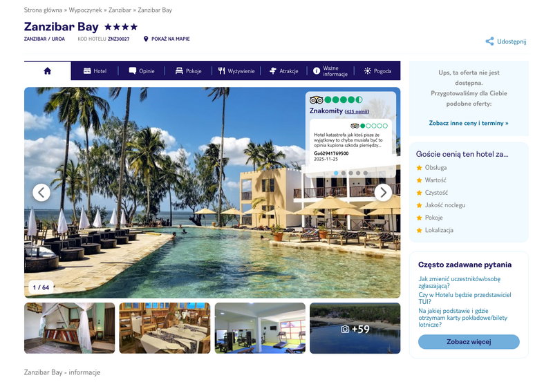 Niedostępność oferty została udokumentowana zrzutem ekranu.