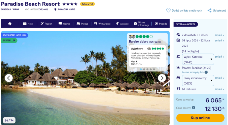 Szczyt sezonu wakacyjnego na Zanzibarze: 14 dni w 4* hotelu z all inclusive od 6065 zł