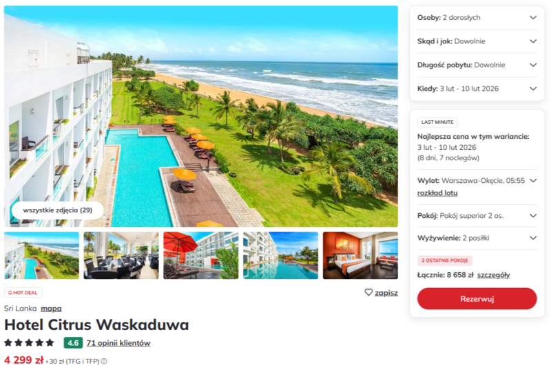 Całość wypada atrakcyjnie dla osób szukających spokojnego wypoczynku nad oceanem i bazy do odkrywania okolicy. Połączenie dobrego położenia i dostępnych aktywności tworzy solidne warunki na udany urlop, a Sri Lanka może oczarować miłośników egzotycznych wyjazdów.