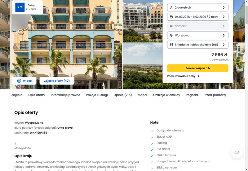 Aktualizacja: Wypoczynek na Malcie: tydzień w 4* hotelu z wyżywieniem od 1492 zł